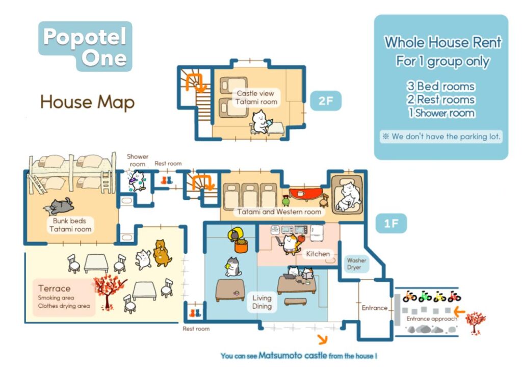 We are located in the city center, a 15-minute walk from Matsumoto Train Station and a 1-minute walk from Matsumoto Castle.